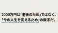 「2000万円問題」という言葉が話題になってから久しい。老後に2000万円が必要だという話だが、僕はこの数字を少し違う角度で捉えている。2000万円は「老後のため」ではなく、「今の人生を変えるため」の数字だ。 この記事では、実際に2000万...