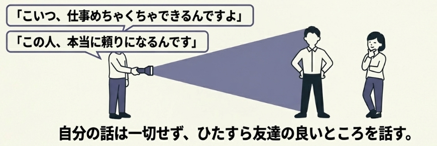 自分の話は一切しない。ひたすら友達の良いところを話す。