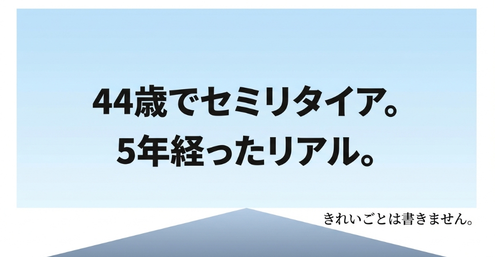 ただ、想定外のことはありました。辞めてみて初めて分かったこともあります。きれいごとは書きません。44歳でセミリタイアして、今49歳の僕が全部正直に書いていきます。