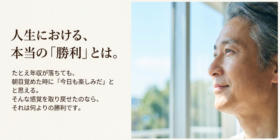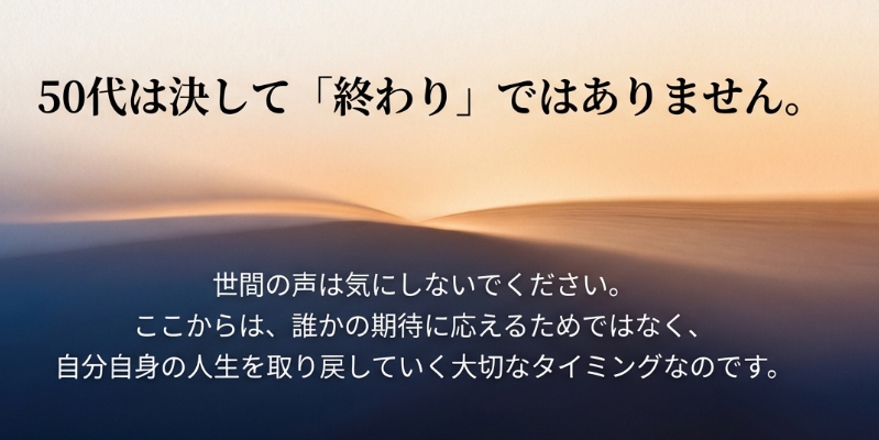 50代。ここまで30年以上、家族のために、会社のために、世間体のために走ってきた。